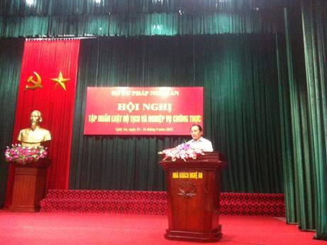 Nhằm đảm bảo tiếp tục thực hiện tốt các quy định về đăng ký và quản lý hộ tịch có yếu tố nước ngoài khi Luật Hộ tịch có hiệu lực thi hành, ngày 10/9/2015 Sở Tư pháp tổ chức tập huấn bồi dưỡng nghiệp vụ cho công chức tư pháp thuộc 08 Phòng Tư pháp trên địa bàn tỉnh.