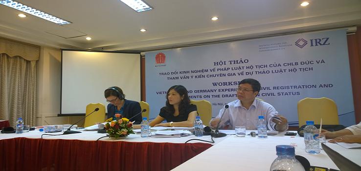 Từ ngày 9-10/9/2014, Bộ Tư pháp phối hợp với Quỹ Hợp tác quốc tế Đức về pháp luật (IRZ) tổ chức Hội thảo trao đổi kinh nghiệm về pháp luật hộ tịch của CHLB Đức và tham vấn ý kiến chuyên gia về dự thảo Luật Hộ tịch. Hội thảo do TS. Nguyễn Công Khanh – Cục trưởng Cục Hộ tịch, quốc tịch, chứng thực và bà Angela Schmeink - Trưởng Văn phòng IRZ tại Berlin đồng chủ trì.