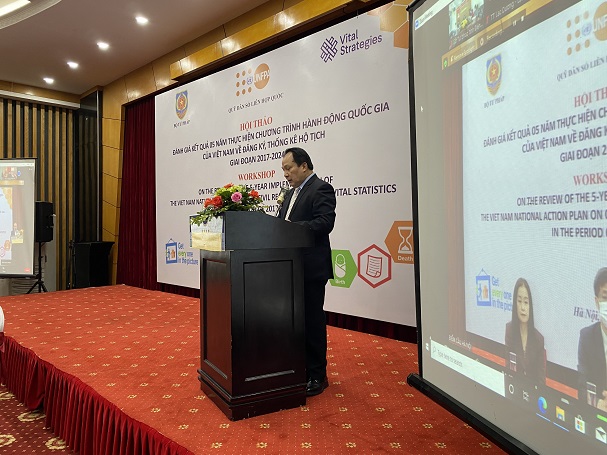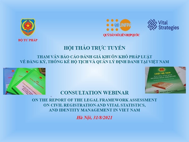 Nhằm tiếp tục triển khai có hiệu quả Chương trình hành động quốc gia về đăng ký và thống kê hộ tịch của Việt Nam giai đoạn 2017-2024 (ban hành kèm theo Quyết định 101/QĐ-TTg ngày 23 tháng 01 năm 2017 của Thủ tướng Chính phủ), trong khuôn khổ dự án hợp tác với Quỹ Dân số Liên hợp quốc (UNFPA), ngày 31/8/2021, Cục Hộ tịch Cục Hộ tịch, quốc tịch, chứng thực đã tổ chức Hội thảo trực tuyến tham vấn ý kiến đối với dự thảo “Báo cáo đánh giá khuôn khổ pháp luật về đăng ký, thống kê hộ tịch và quản lý định danh ở Việt Nam”.