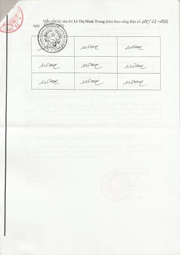 Đồng chí Lê Thị Minh Trang được ủy quyền ký kể từ ngày 31/7/2015, thay biên chế đồng chí Nguyễn Thị Ngọc Ánh (người đã được giới thiệu tại Công văn số 1763/CV-LS-LSNN ngày 21/6/2012 của Cục Lãnh sự - Bộ Ngoại giao). Đồng chí Nguyễn Thị Ngọc Ánh thôi ký kể từ ngày 31/7/2015.