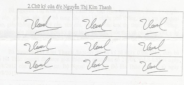 Đồng chí Nguyễn Thị Kim Thanh được ủy quyền ký kể từ ngày 07/8/2015, thay biên chế đồng chí Đỗ Hà Thảo (người đã được giới thiệu tại Công văn số 2470/CV-LS-LSNN ngày 13/8/2012 của Cục Lãnh sự - Bộ Ngoại giao). Đồng chí Đỗ Hà Thảo thôi ký kể từ ngày 07/8/2015.
