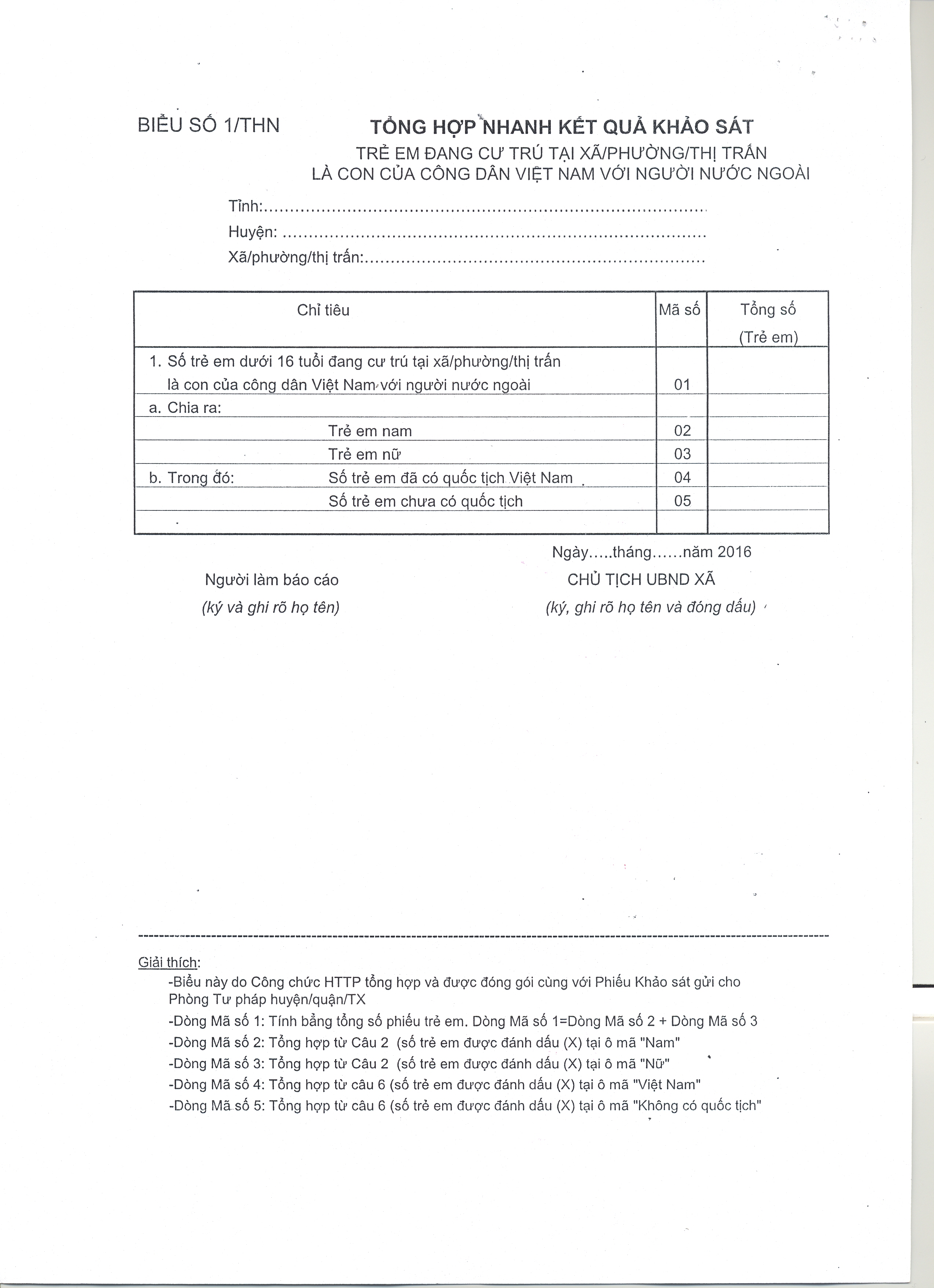 Về việc rà soát, đánh giá tình trạng quốc tịch, hộ tịch của trẻ em là con của công dân Việt Nam với người nước ngoài đang cư trú trên lãnh thổ Việt Nam